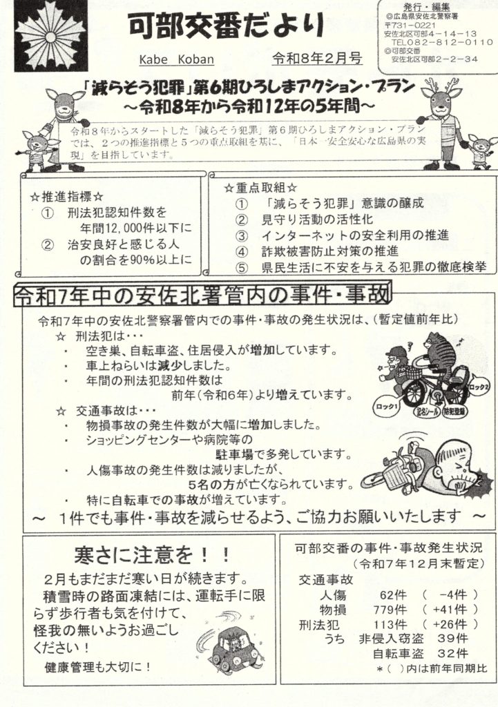 2026年2月17日 / 最終更新日時 : 2026年2月17日 masumoto 安佐北区広報 安佐北区広報0215 FacebookBluesky コメントを残す コメントをキャンセルメールアドレスが公開されることはありません。 ※ が付いている欄は必須項目ですコメント ※ 名前 ※ メール ※ サイト 次回のコメントで使用するためブラウザーに自分の名前、メールアドレス、サイトを保存する。 上に表示された文字を入力してください。